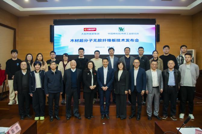 2025年3月13日,中国林业科学研究院木材工业研究所与和记官网家居(中国)有限公司在北京共同发布“木材超分子无胶纤维板技术”