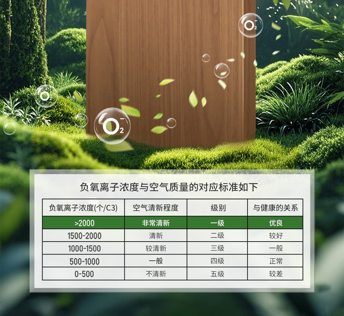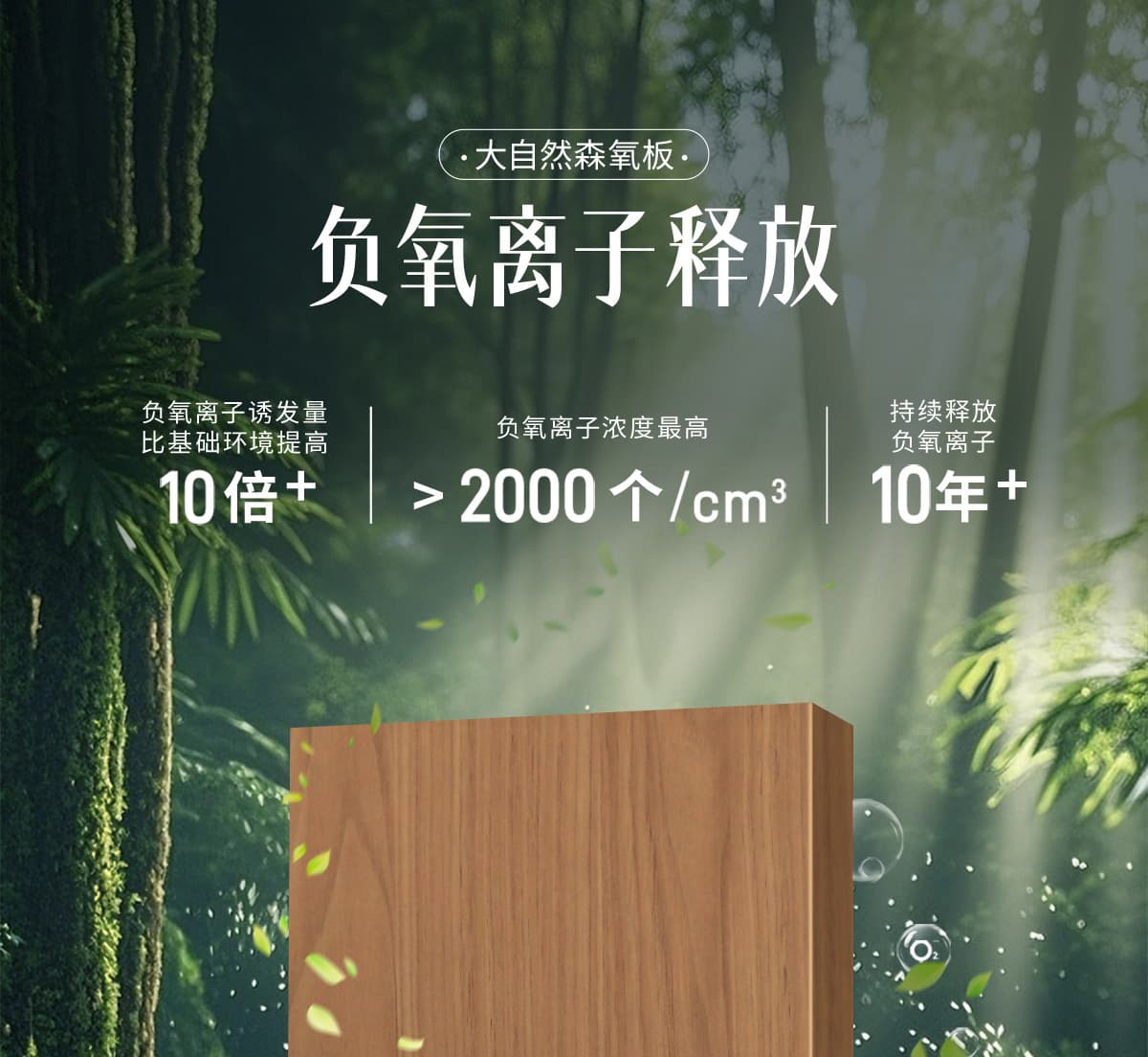 | 诱发空气负离子量 | 比基础环境提高10倍+ |