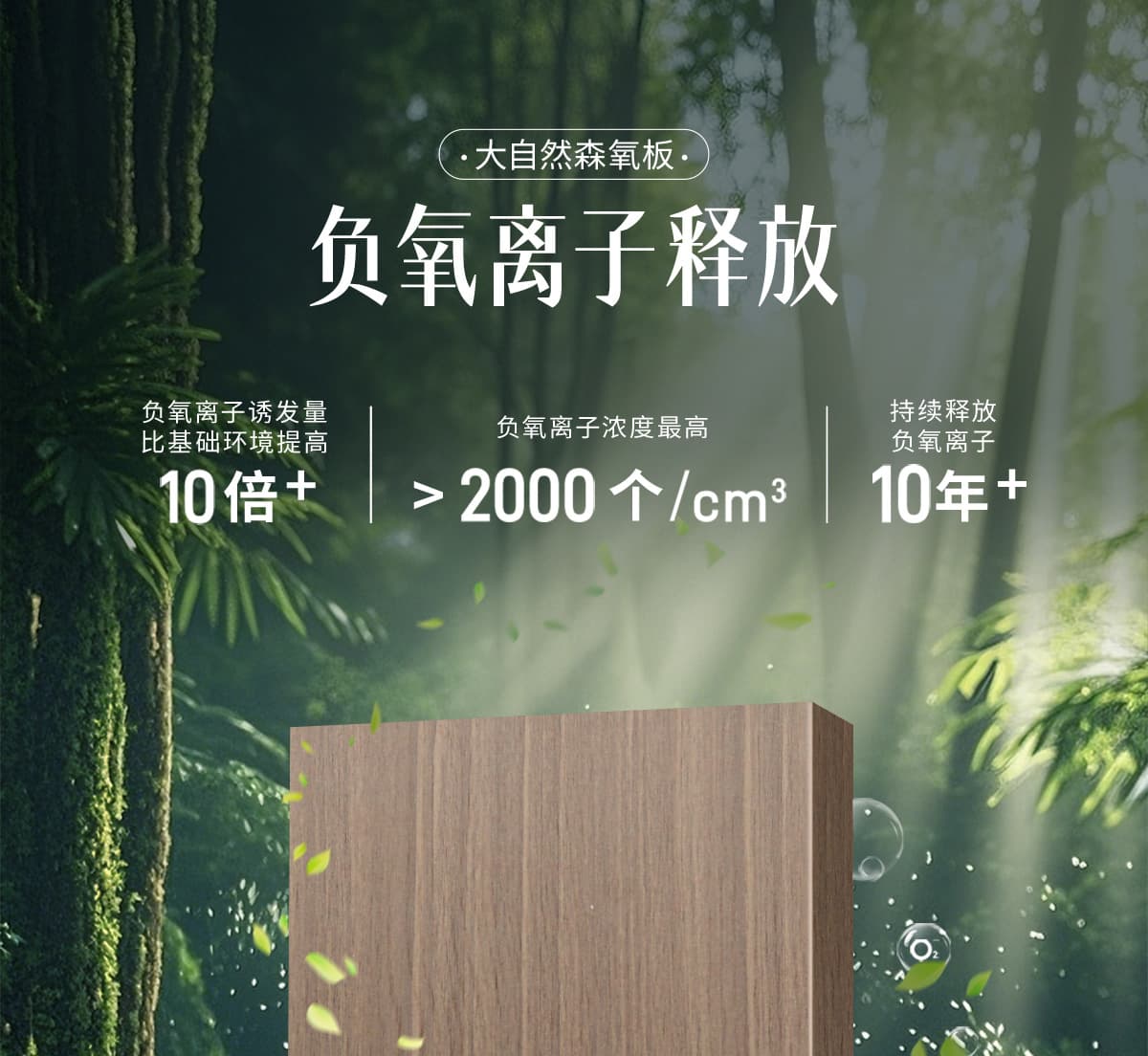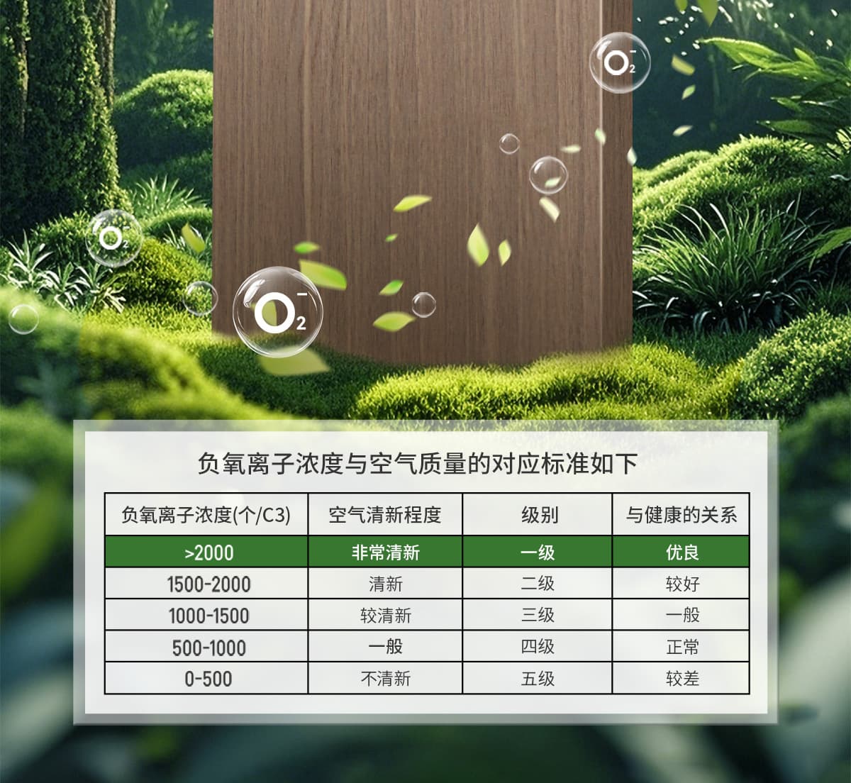 | 诱发空气负离子量 | 比基础环境提高10倍+ |