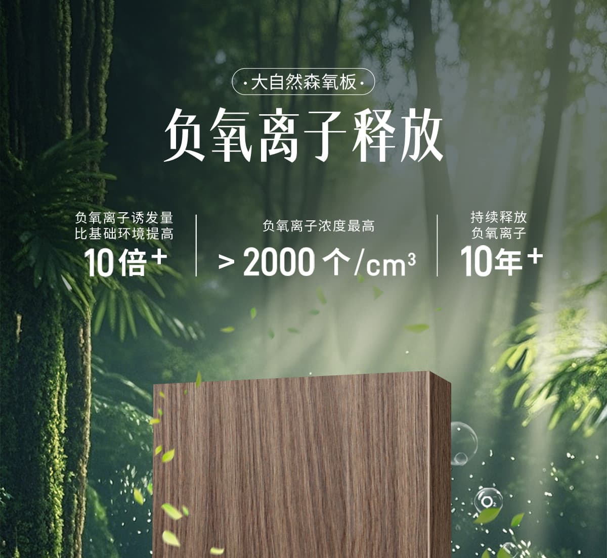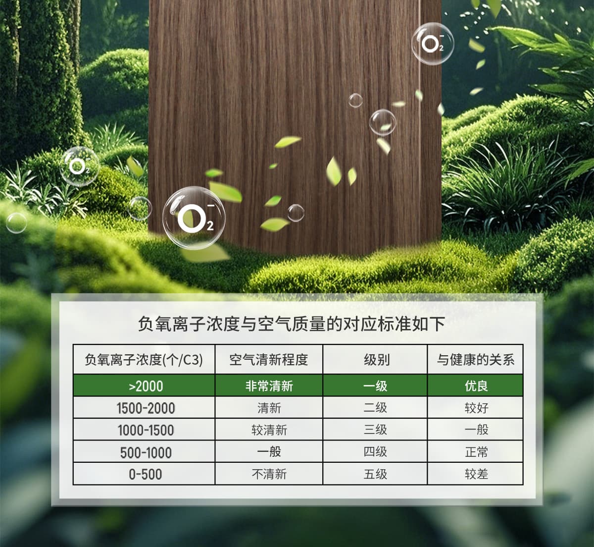 | 诱发空气负离子量 | 比基础环境提高10倍+ |