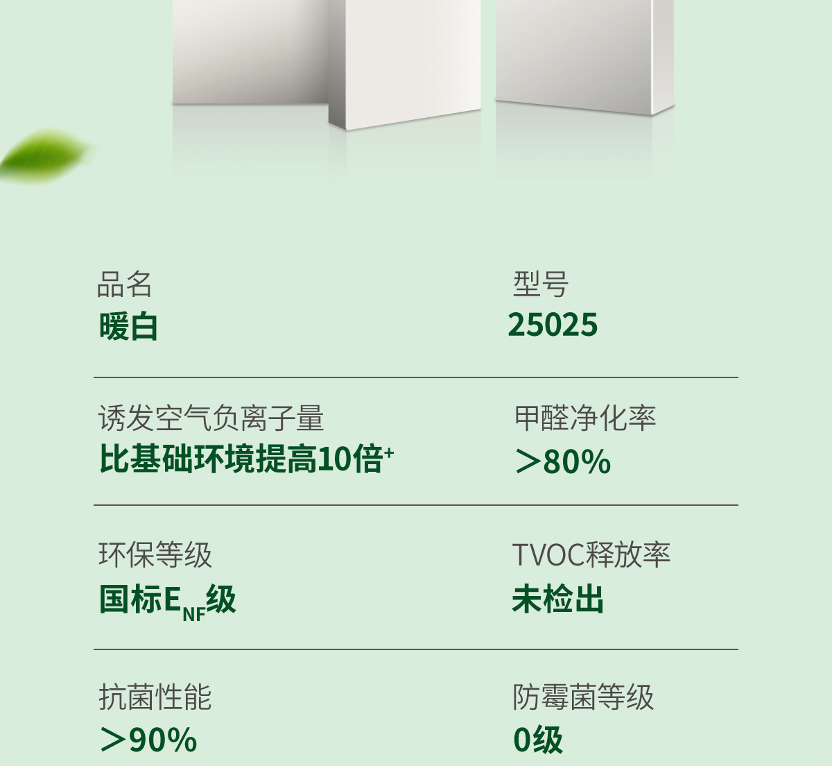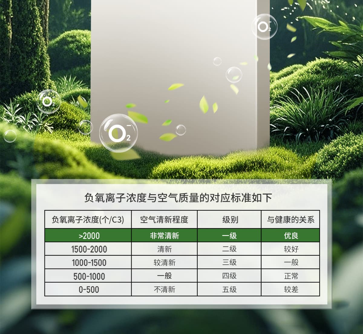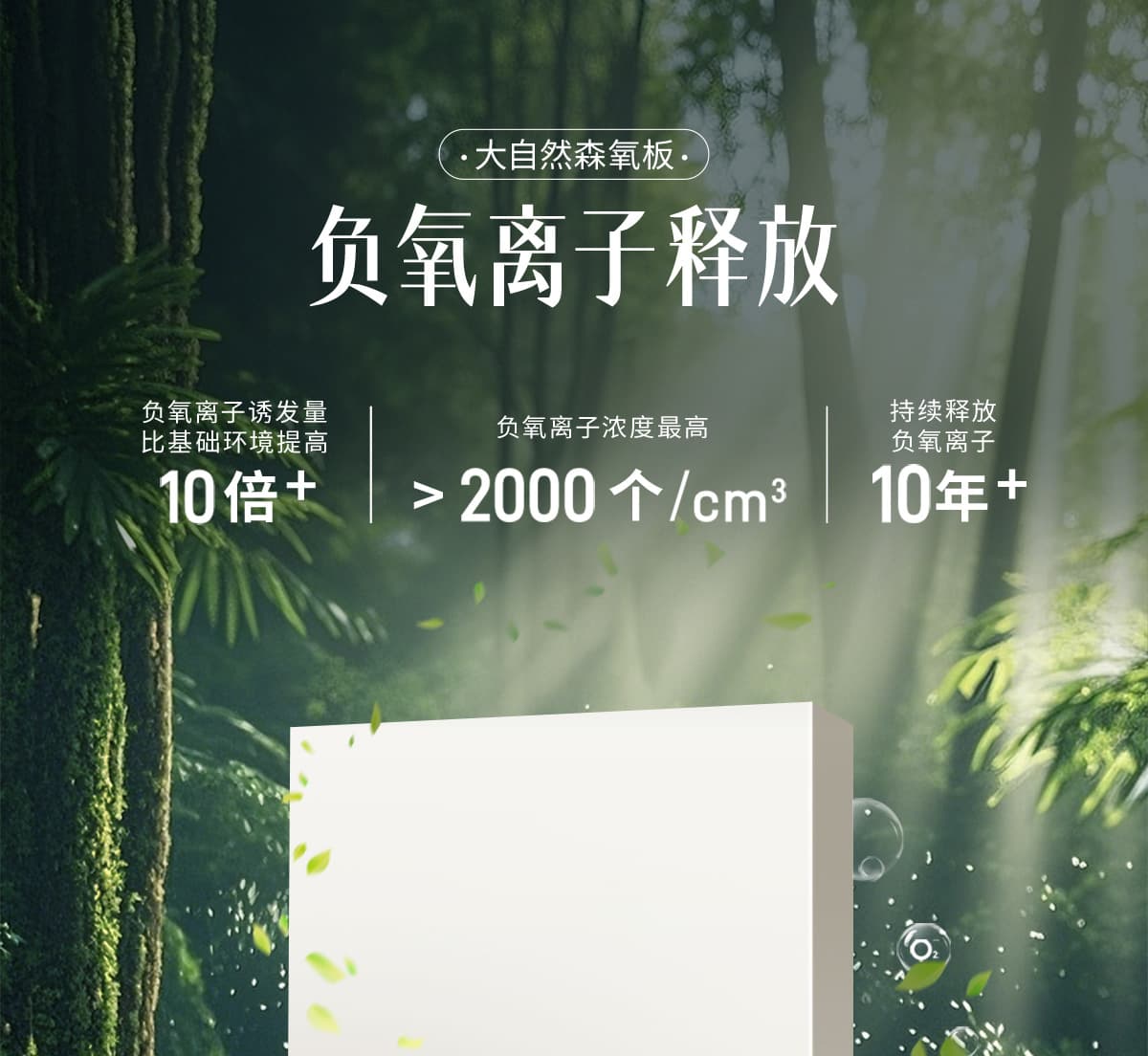 | 诱发空气负离子量 | 比基础环境提高10倍+ |