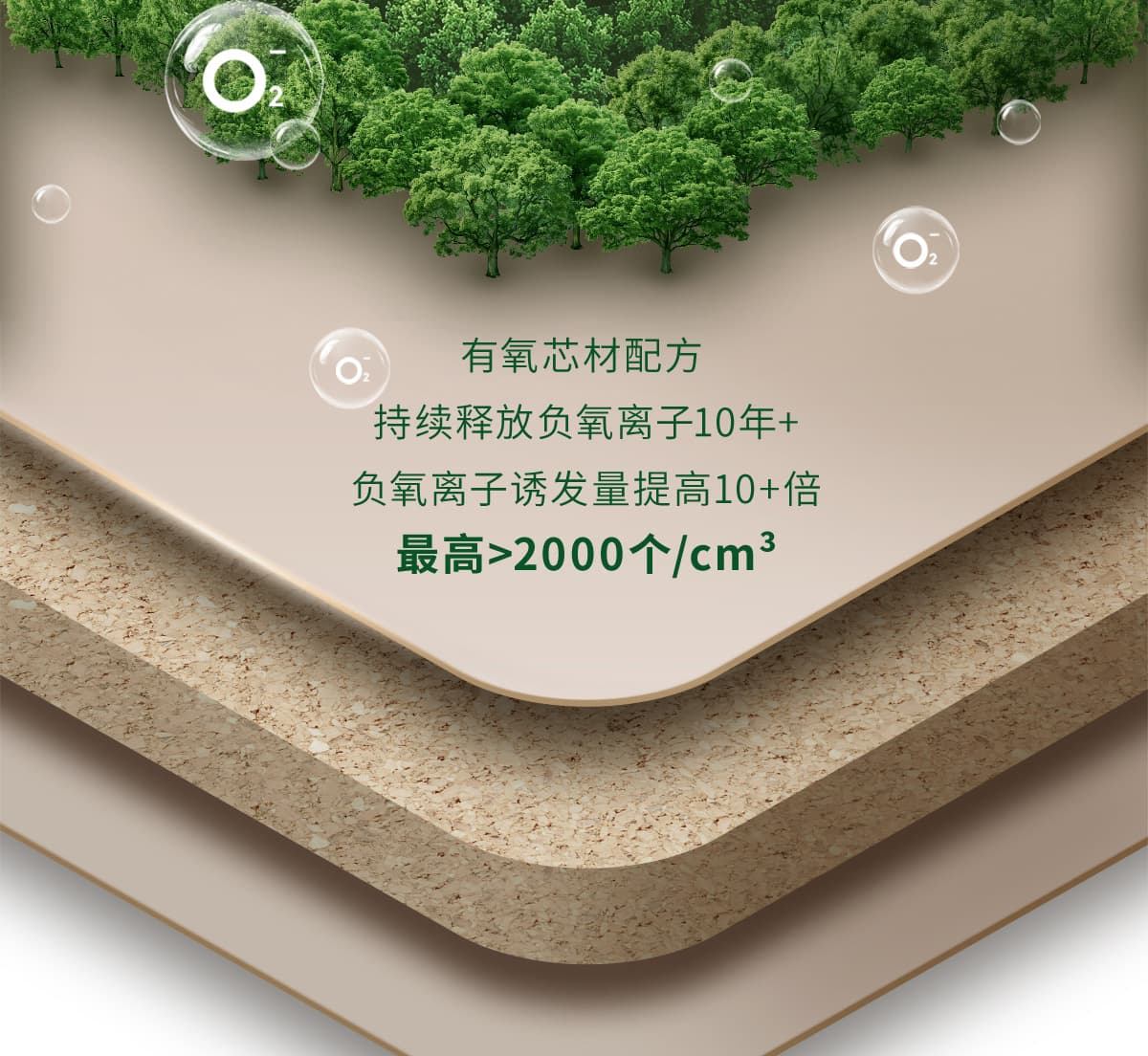 | 诱发空气负离子量 | 比基础环境提高10倍+ |