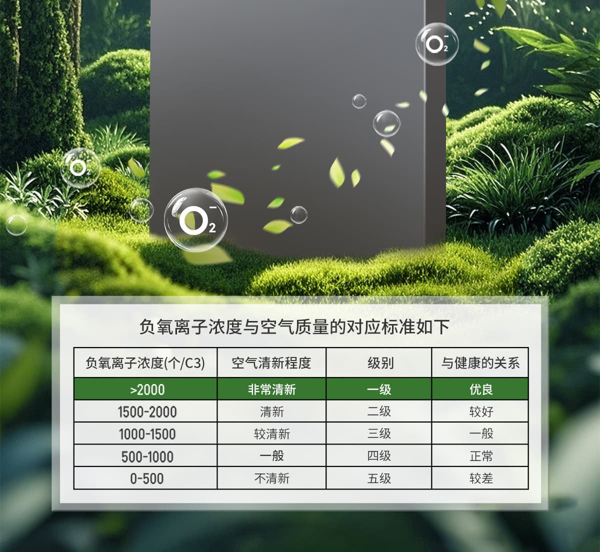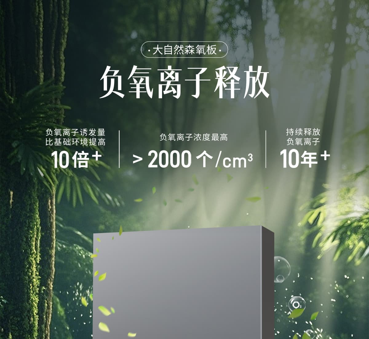 | 诱发空气负离子量 | 比基础环境提高10倍+ |