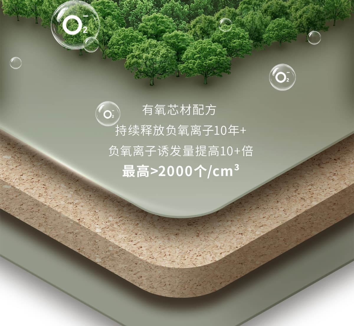 | 诱发空气负离子量 | 比基础环境提高10倍+ |