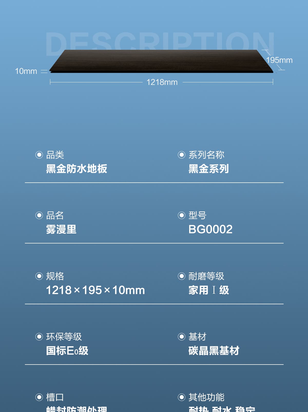 | 产品品类 | 黑金防水地板 |
