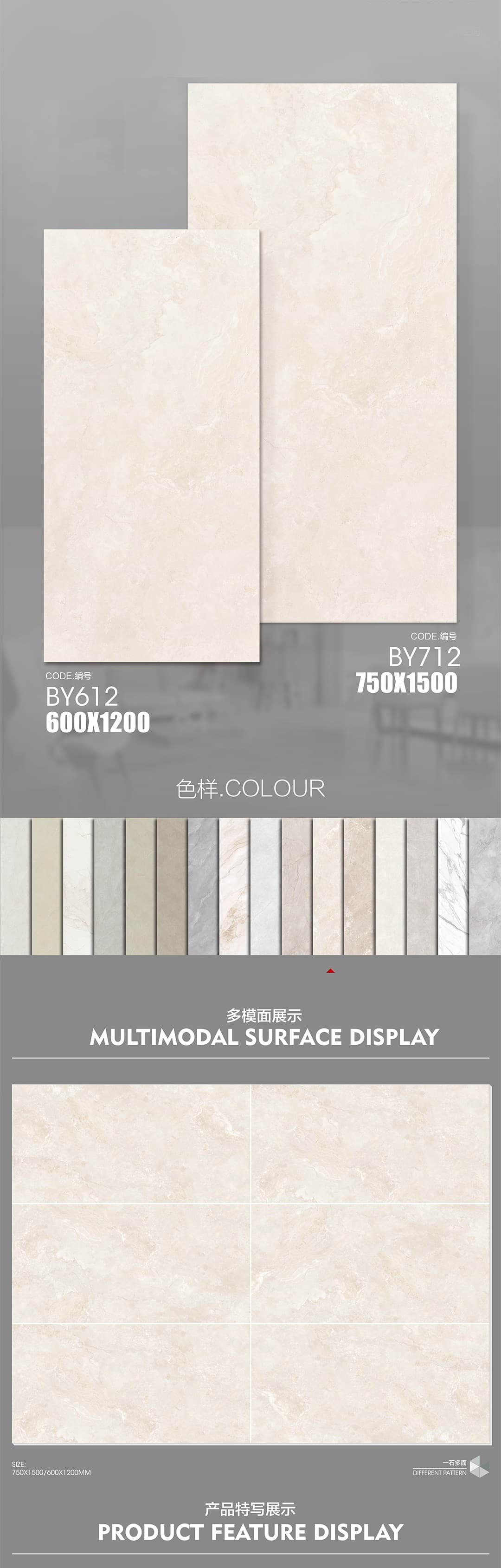 表面柔和,防污效果强,防滑R10指标高,抗折强度好